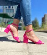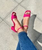 Sandalia Eco 7 Cm Fucsia Punta Cuadrada