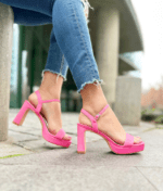 Sandalia Taco 7 Cm Fucsia Punta Redonda